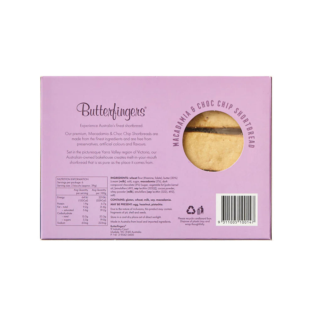 Butterfingers Macadamia Choc Chip Shortbread 175g Box.